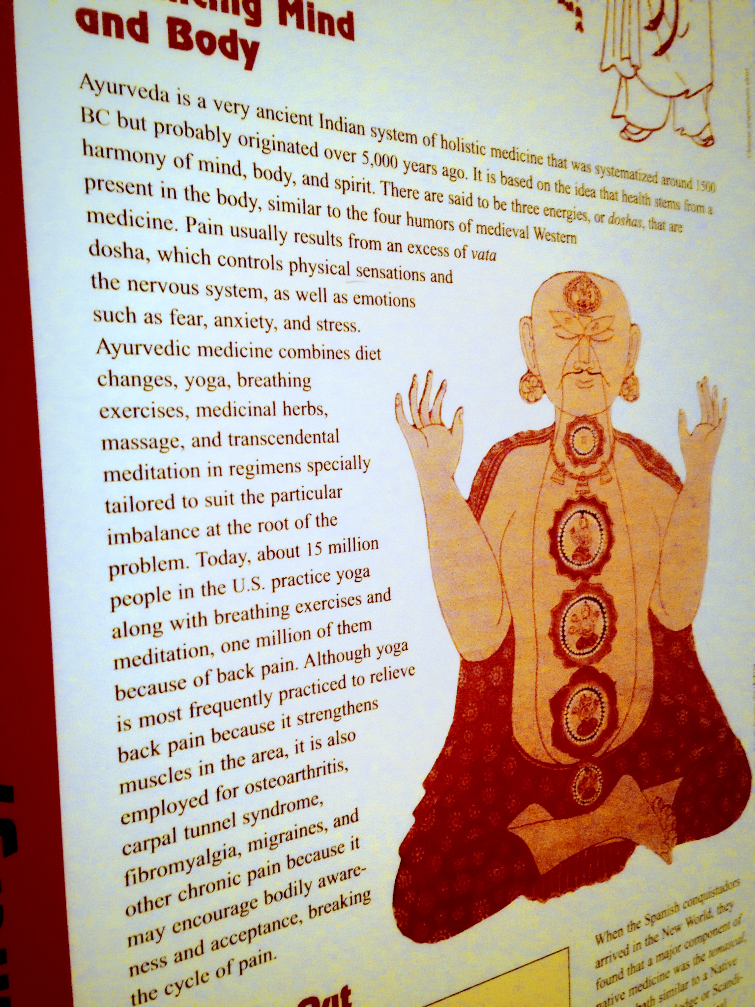 One intriguing section on the third floor displayed history, anatomy and medical conditions of pain including alternative treatments such as Ayurveda, an ancient Indian holistic medicine. Ayurvedic medicine combines diet, yoga, breathing exercises, medicinal herbs and more to resolve pain.
