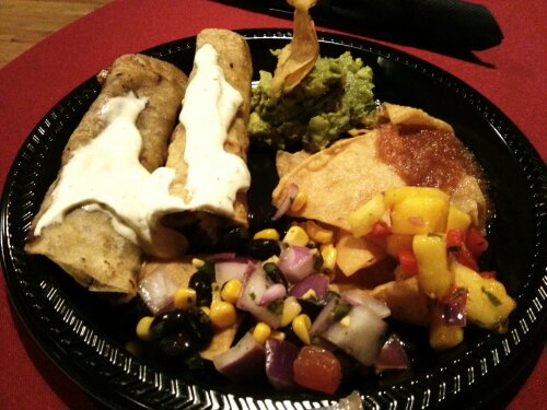Kate: Monica wasn’t available for the Google+ Local Day of the Dead event so I wrangled two brave friends, Melissa and Karla, to come with me. It was a thriller to see Dia De Los Tamales with a huge spread of food for us. Our fave vegan black bean tamales were haunting the table as well as asparagus taquitos, fresh guac, and three types of salsas (red, green and black bean & corn). My meat eating pals were treated too, not with brains, but pollo and pork tamales.