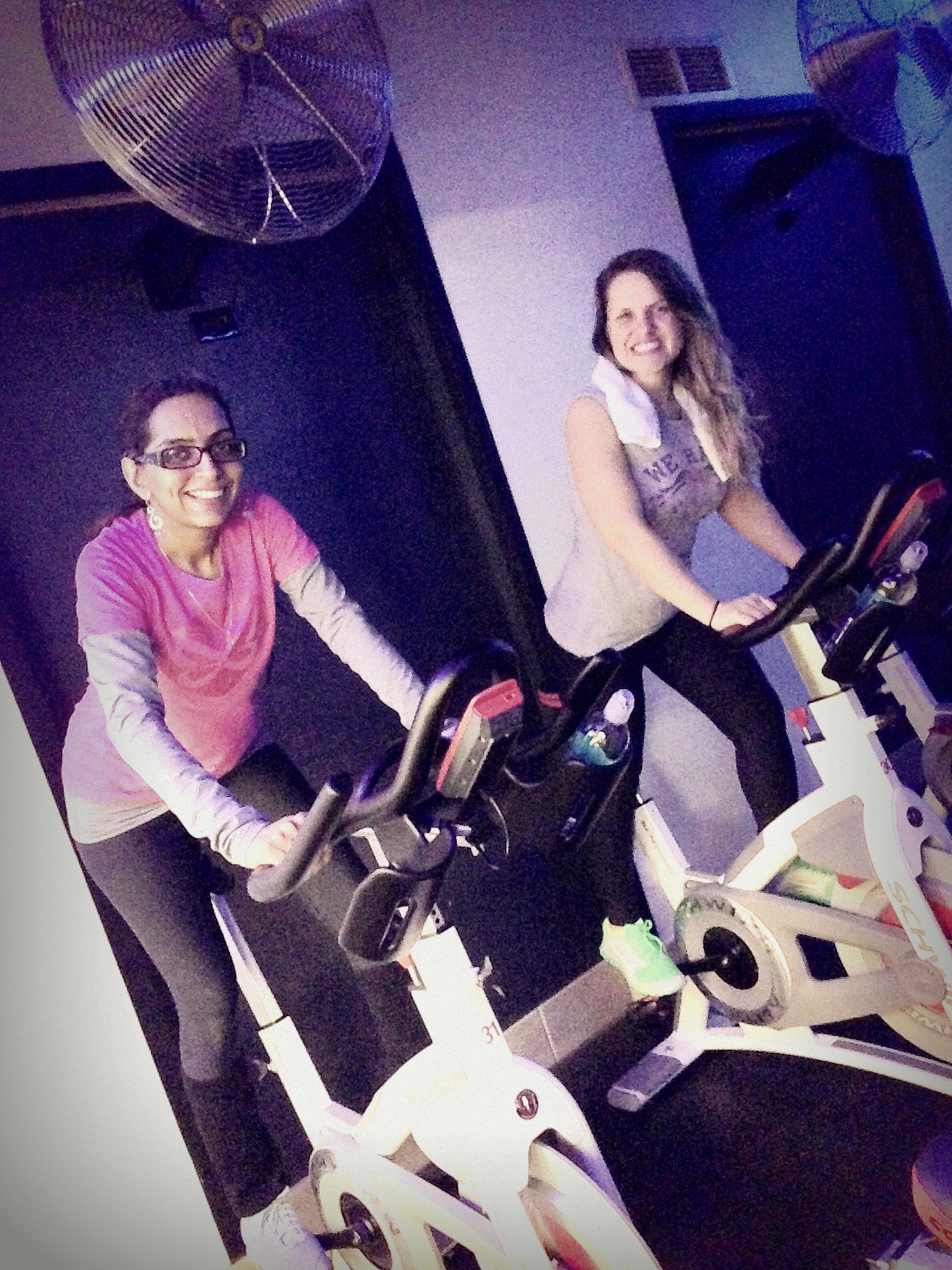 The instructor started us off with a warm up of moderate pedaling and then led the class in an interval format as bubbly pop music played in the background. She was unashamed to throw Beiber and Usher in the mix to get us moving. After we were slightly sweaty, the resistance was added and we worked in a hill format. We both popped up off the bike seats and pedaled while standing, making it a killer quad and glute experience.