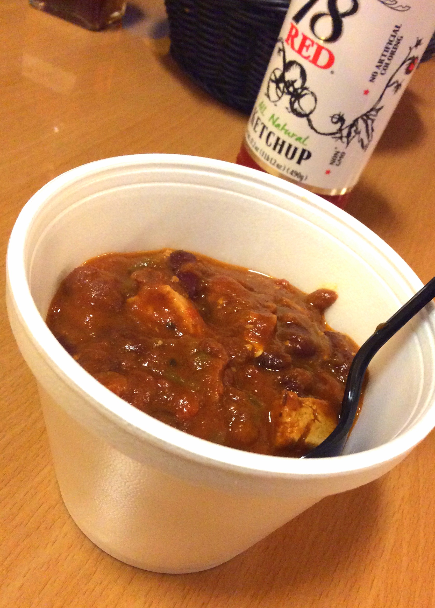 The menu hosts 17 specialty burgers, wangs (or wings as some might call them) with house made sassy sauces, and side options like house cut sweet potato fries. We started our culinary experience with hearty samples of the vegetarian chili. A toasty bowl of chili is definitely the thing for a Chicago arctic winter. It had a healthy amount of cooked “just right” beans, a perfectly thick consistency and a nice kick of spice. We liked the bits of tofu floating around in the mix as it added to the filling nature of the chili. This dish could make your meal and Burger Point gives you free toppings like cheese, sour cream, olives and onions to boost it’s fill factor.