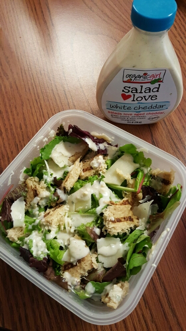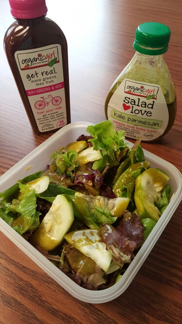 We’ve been wondering, we have all these BPA free recycled clam shells of Organicgirl spring mix, what do we dress it with!? Lemon Agave, White Cheddar, Fresh Tomato Italian or Kale Parmesan.