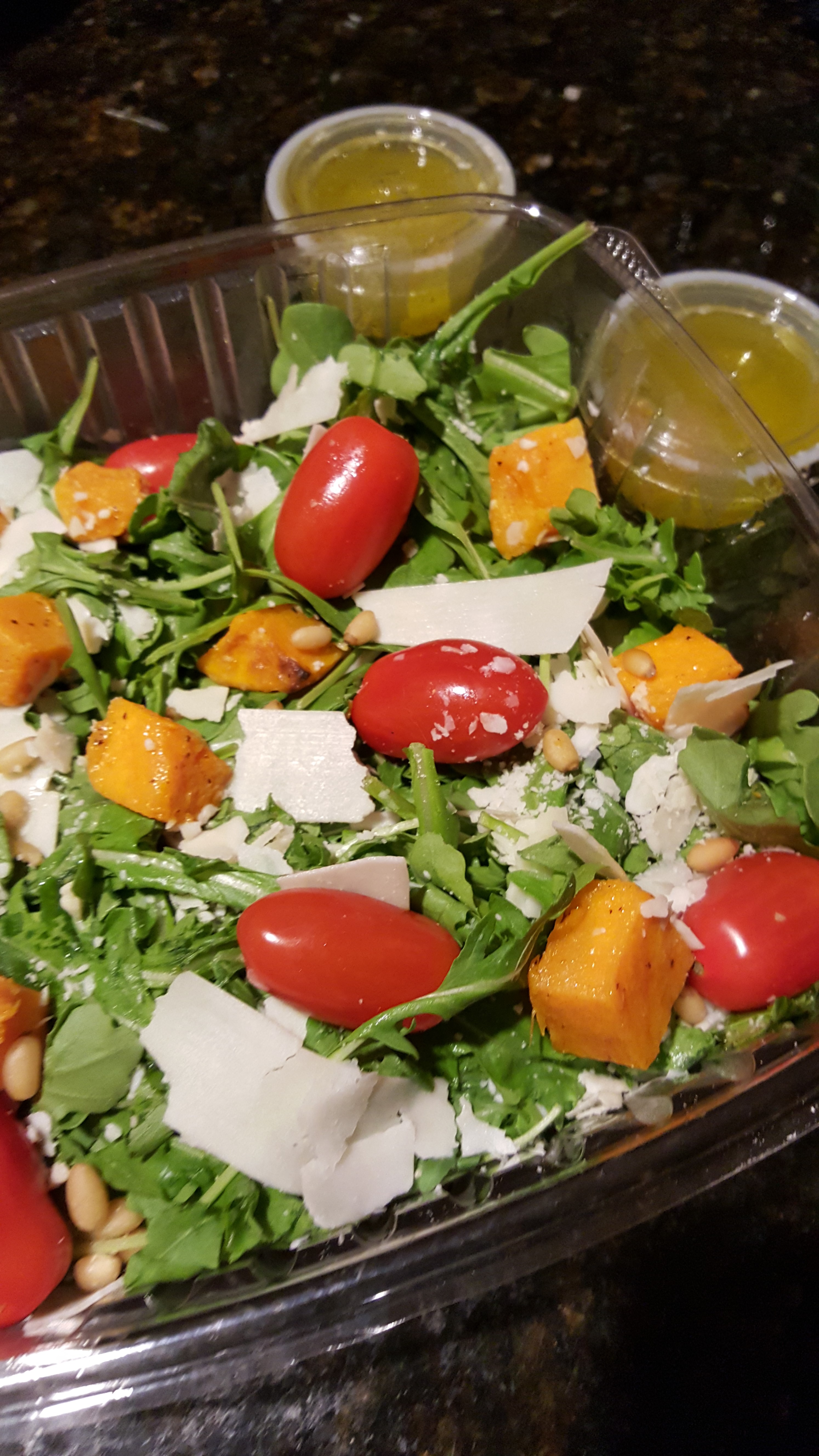 Salad: The Sunshine salad was filled with spicy arugula greens, roasted butternut squash, pine nuts and shaved mozzarella. Lemon oil dressing complimented the mix with a tart and bright flavor. The salad did need a little bit of salt and pepper to balance the sour lemon.