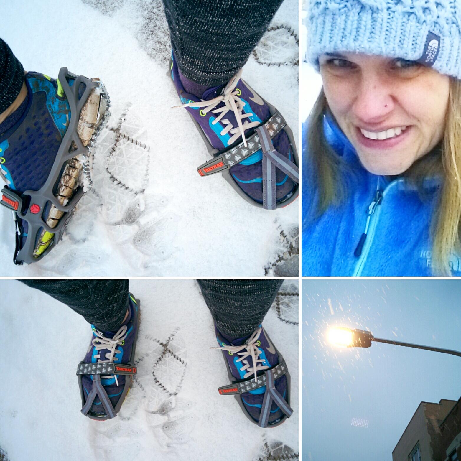 - Dashing Through the Snow – YakTrax did not have a drastic affect on our gait. They kinda feel like you’re bouncing a bit on a cloud of snow. We only put in a 5k distance so not sure how they’d fair on a longer jaunt.
