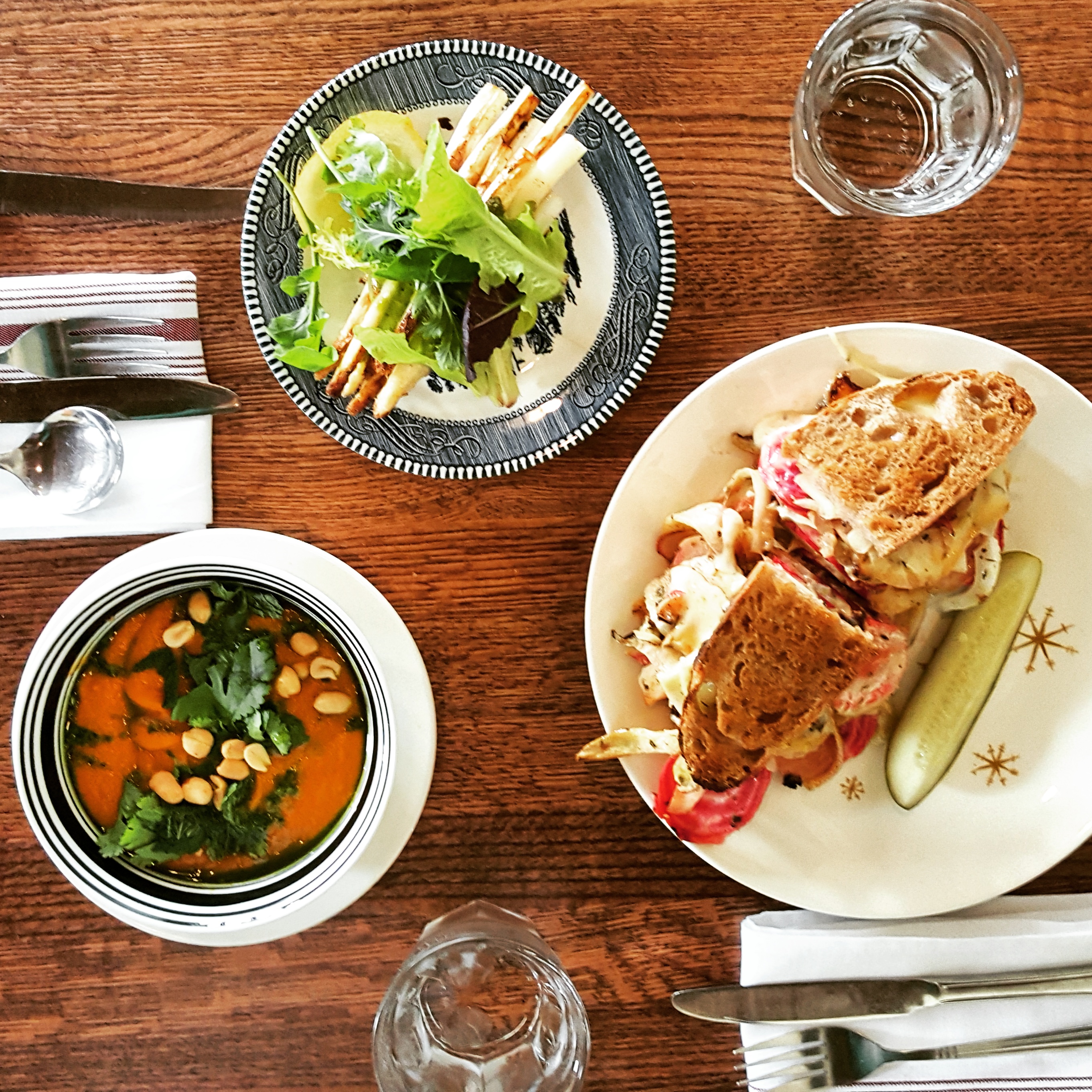 Our culinary pièce de résistance — Think of this as a fancy grilled cheese piled high with heart healthy veggies. Roasted root vegetables give the sandwich a savory and filling profile. The raclette, a semi-hard cow’s milk cheese, is a magic melter, giving the crusty homemade bread a smattering of delicious fondue like goodness.