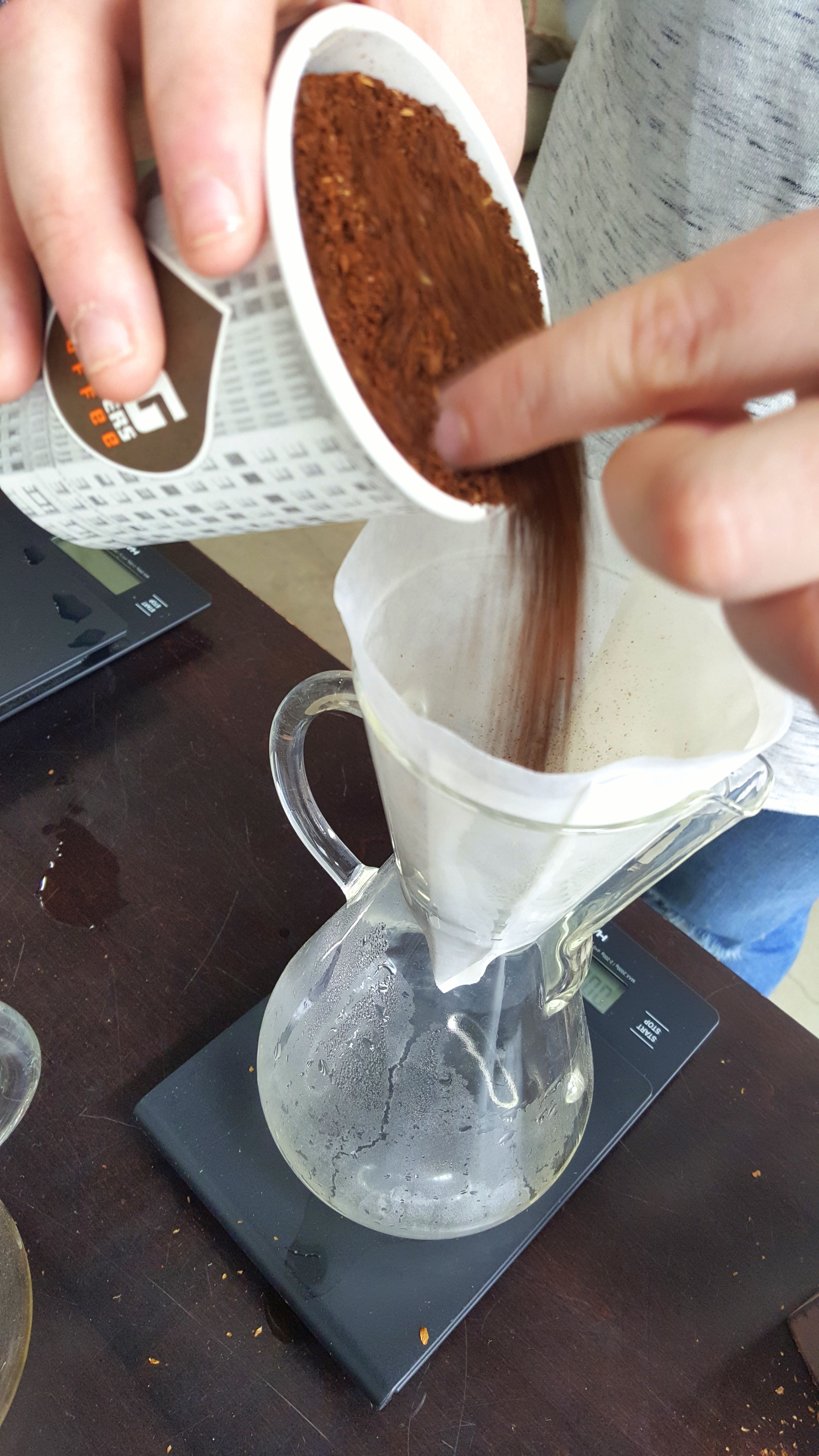 - Now it’s time to put on your hipster clothes and get down to the Pour Over method. Bloom the coffee by pouring in enough water to moisten coffee grounds but not to brew.