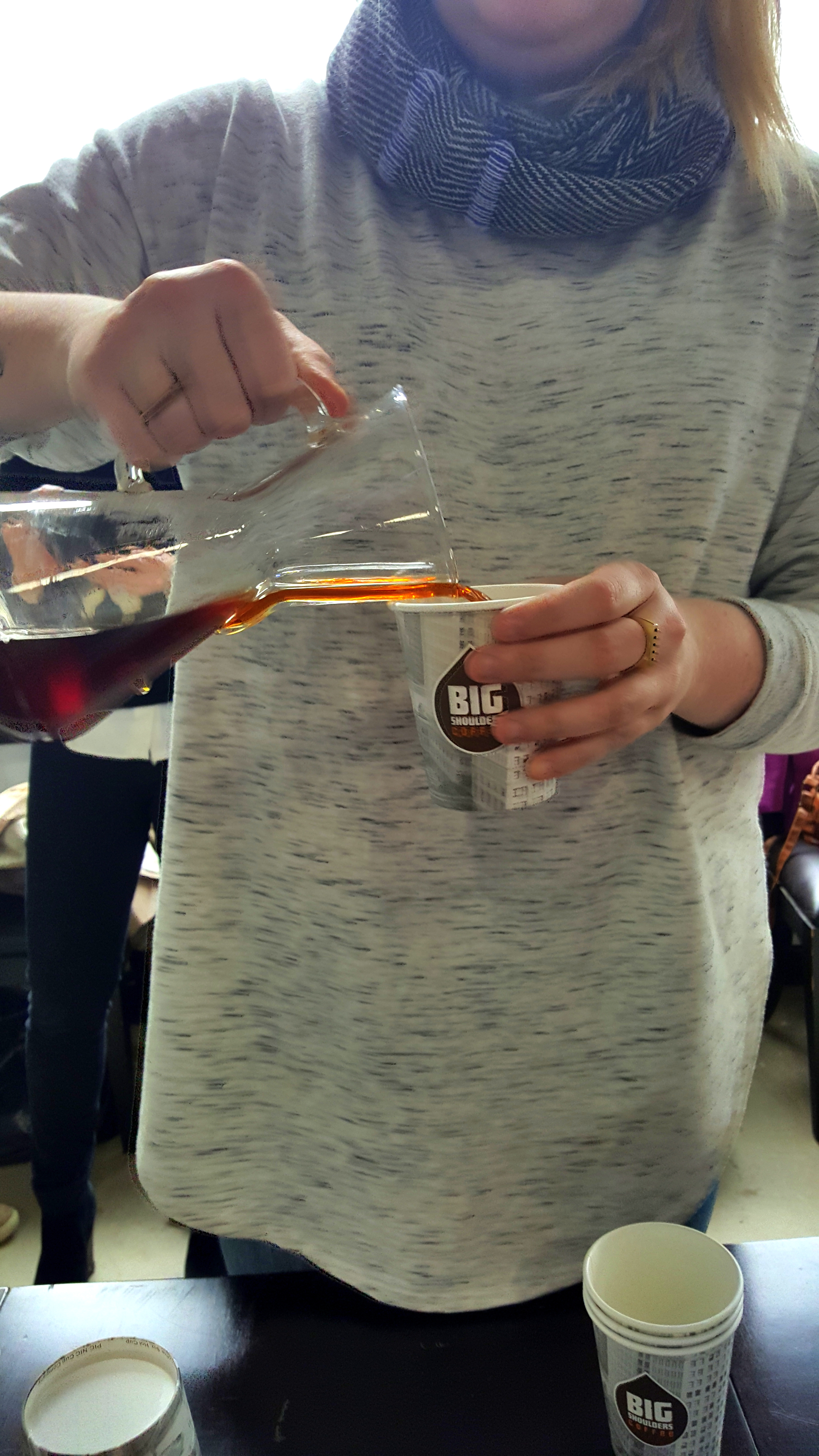 We studied the intricacies of brewing the perfect cup two weekends ago at the Windy City Blogger Collective private roasting session at Big Shoulders Coffee. Founder, Tim Coonan, gave us an all bean access tour of The Roastery, where Big Shoulders coffee beans are delicately processed, like a green coffee caterpillar becoming an espresso butterfly. As an artisanal micro-roaster, the company builds fair trade relationships and creates unique crafted blends and single origin coffees with bold tastes (herbs, toffee, dark chocolate) .