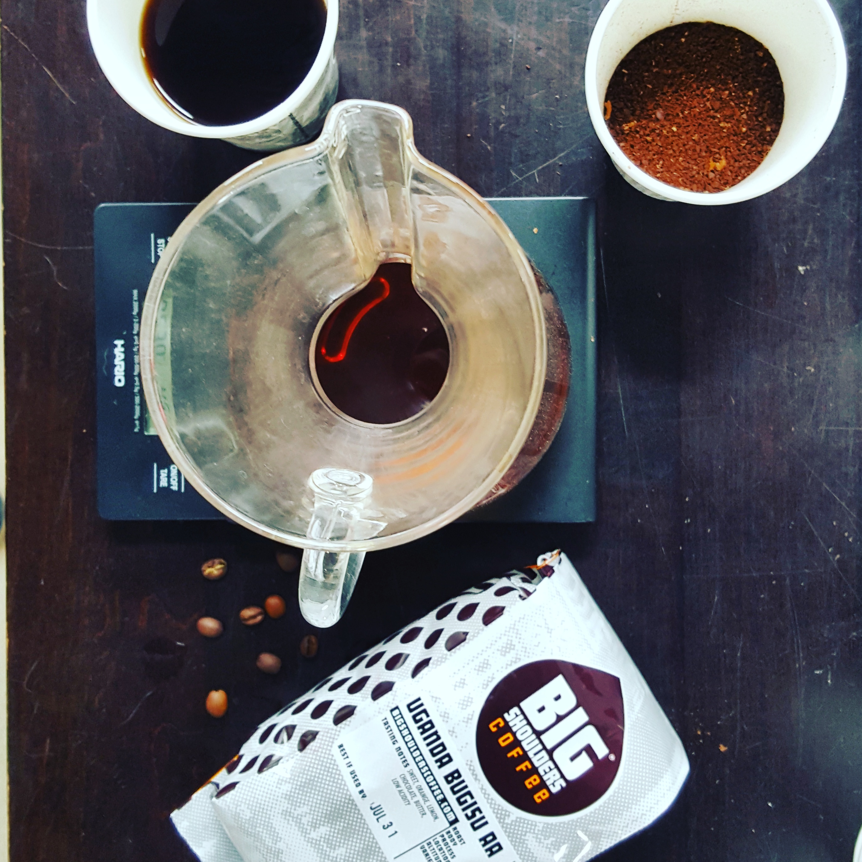 - Measure out 2 tablespoons of freshly ground Big Shoulders coffee per 6 ounces of water.