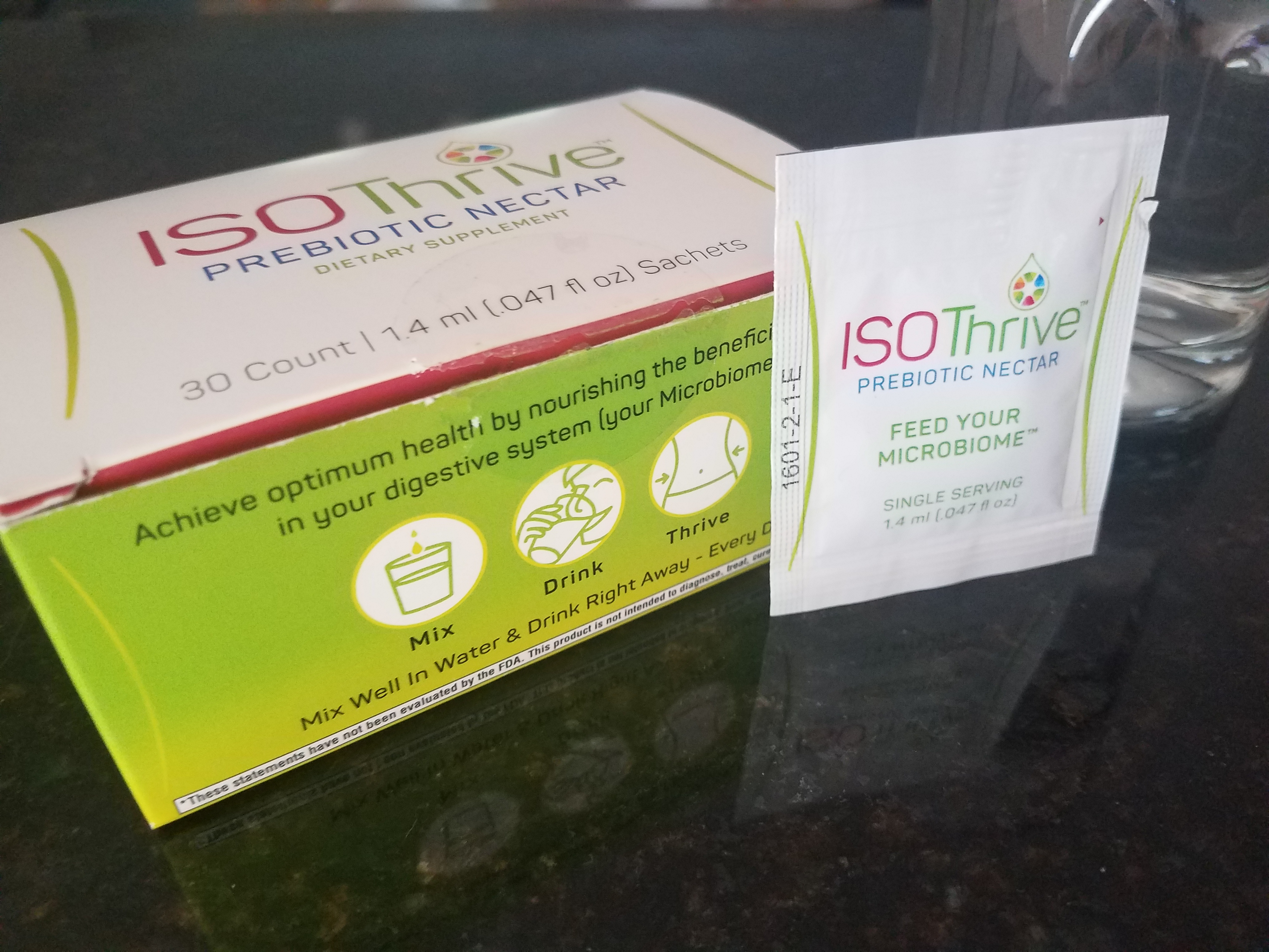 - Mix the contents of the tiny sachet of ISOThrive into a cold glass of water and take our daily multivitamins